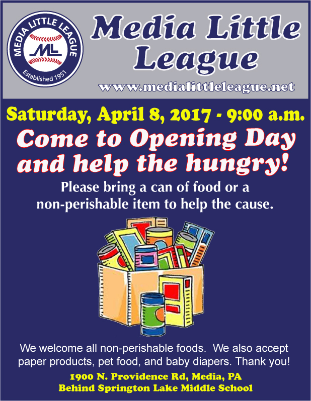 Media Little League - Come to Opening Day (Sat. April 8th) and help the hungry!